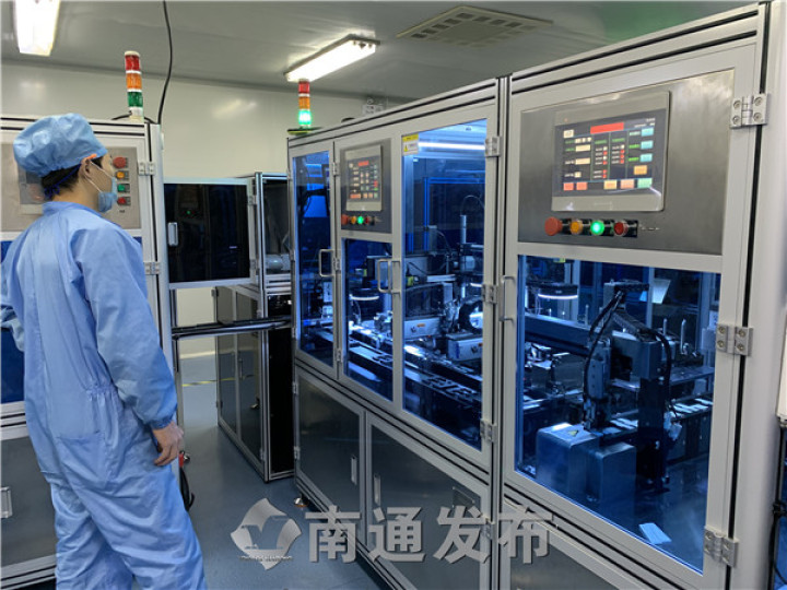 10月30日,南通伊仕生物技術股份有限公司生產車間內,一臺臺自主研發(fā)的全自動化設備馬力全開,零星的幾個工作人員身穿潔凈防護服,只需動動手指操作控制面板。分切、組裝、入袋包裝、批號打碼……一個個小小的試劑板從這里誕生,被運往世界各地,日產量約170萬人份。