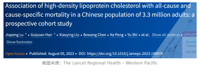 近期發(fā)表于The Lancet Regional Health – Western Pacific的一項(xiàng)研究,旨在全面評(píng)估中國(guó)人群中HDL-C與全因死亡率和病因特異性死亡率的關(guān)系,并評(píng)估高HDL-C對(duì)比低HDL-C的死亡率,從而為人群層面的HDL-C管理策略提供新的知識(shí)和深入的見解。